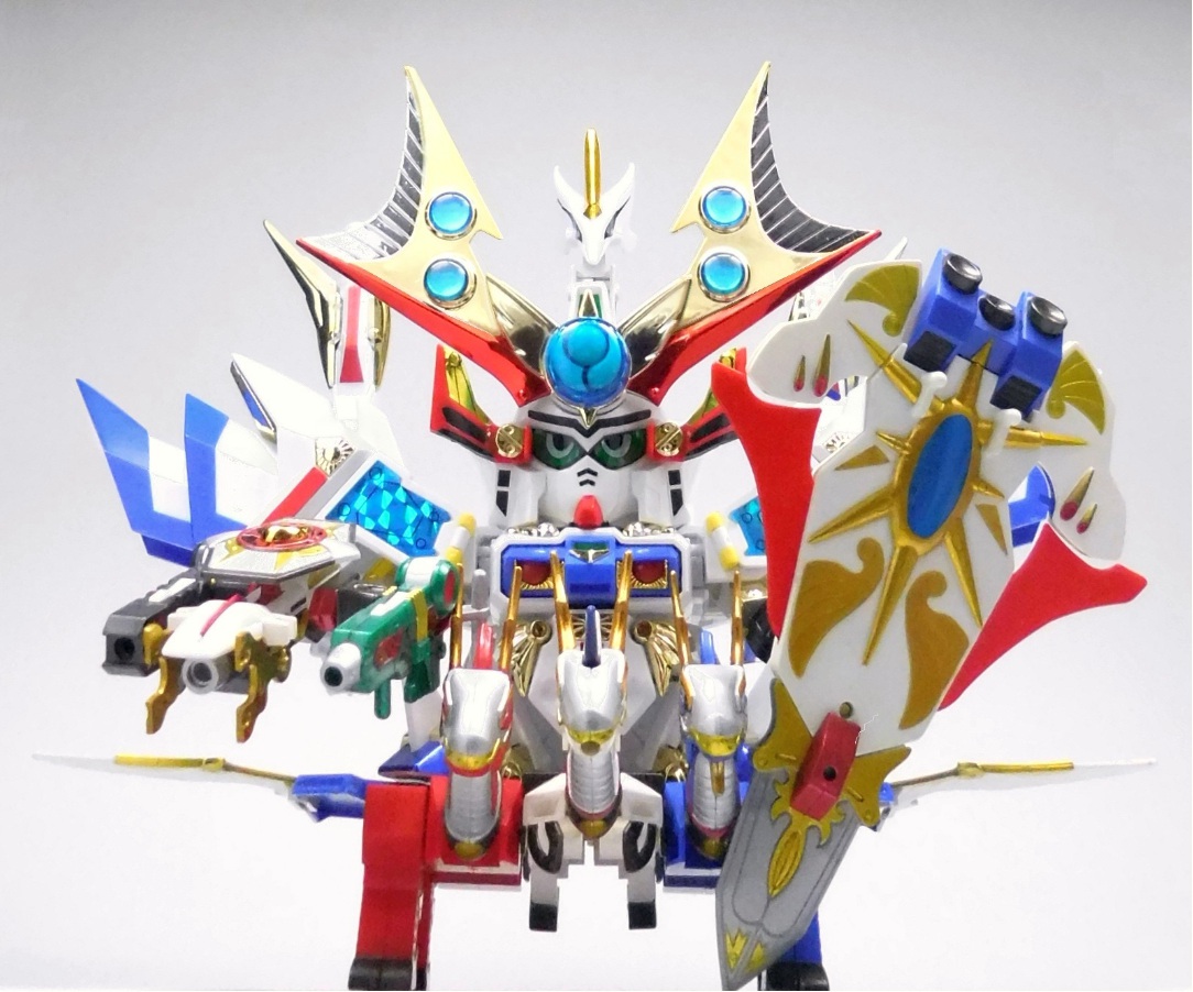 頑駄無大光帝が闇大帝頑駄無との対決で危機に陥ったとき、彼の正義の心が奇跡を呼び、天空からの不思議な力によって三つの合体アイテムと融合した姿。